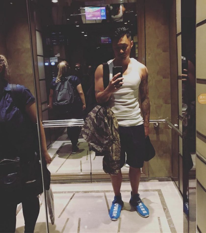 时尚ICON余文乐今天穿了什么鞋?不是新鞋,而是一双于去年 9 月登场的 Pharrell x adidas Originals NMD Hu “Shale Blue”。该鞋款以蓝色为主调,在保留 NMD Hu 的经典配置的基础下,将 Primeknit 鞋面上的 “HUMAN” “RACE” 字样替换为 “HUMAN” 和 “BEING” 呈现。