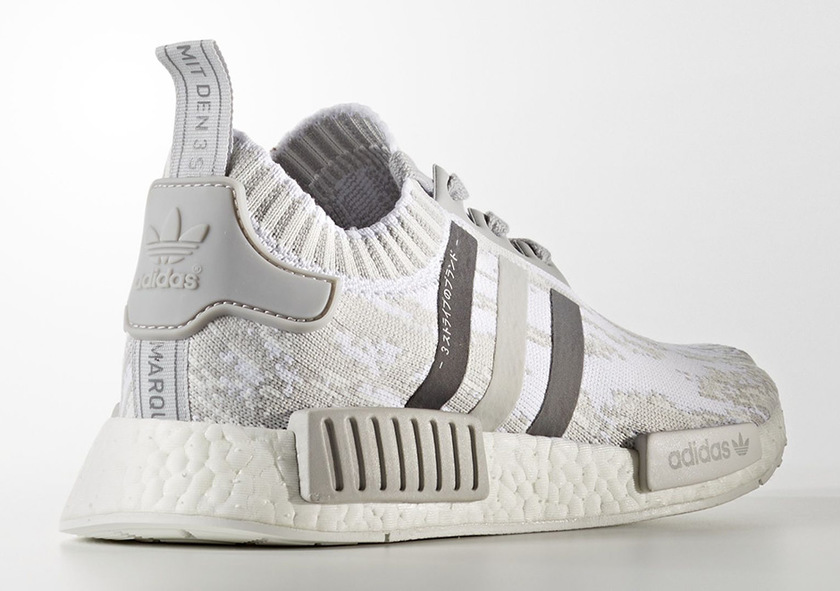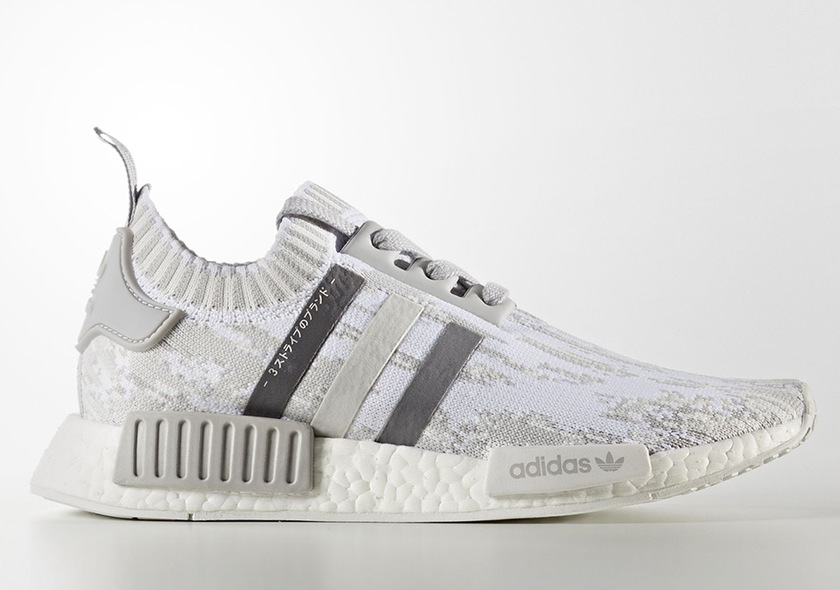 你的队友NMD还有3秒到达战场!adidas继续坚持在初代NMD鞋款上推出新配色,比如下面这款即将问世的带有“伪装”迷彩风格的NMD R1 Primeknit。配色上采用灰白相间呈现PK鞋面,浅浅的颜色非常适合夏日着用,也是一枚百搭圣器。侧边三间也以深灰、浅灰交叉呈现,并搭载日文加持,一切设计保持简约而充满潮流气息的风格。喜欢的朋友可以关注近期adidas的发售动向,很快就会上架哦。