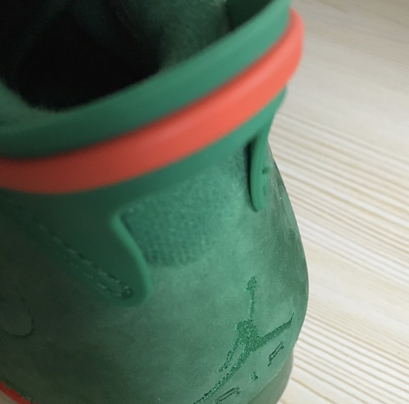 只闻其声不见其人的Air Jordan 6“Gatorade”终于揭开神秘面纱,@ggg10278585在近日po出一组该鞋款局部谍照预览。