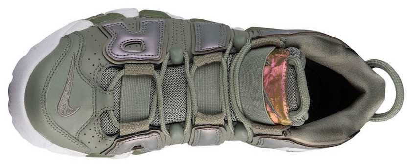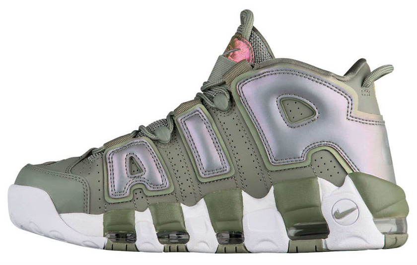 有别于Air More Uptempo GS系列的半掌Air Max配置,此款大AIR将全掌配备Air Max气垫,妹子们也能享受到原汁原昧的Air More Uptempo。配色方面以橄榄绿为基底,搭配白黑色点缀,夸张的大AIR字符大胆地采用了炫彩色泽点缀。