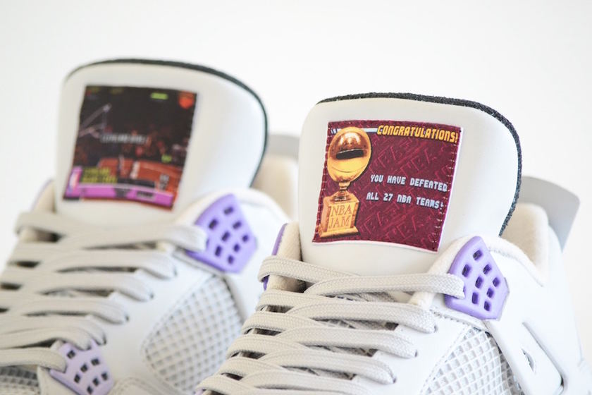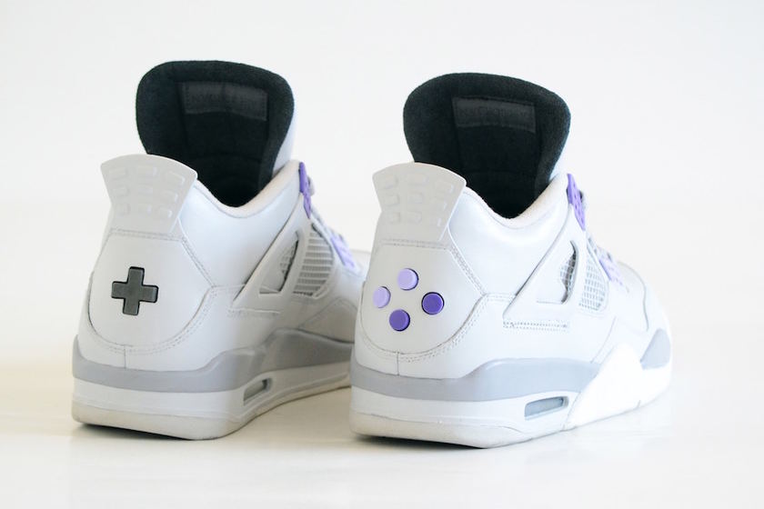 由球鞋定制团队Freaker Sneaks带来的此款Jordan 4表现了经典游戏NBA JAM主题。以白色/灰色/淡紫为主题色调,在后跟装饰了游戏操作按钮,鞋舌处点缀游戏画面,不知各位觉得这款 Air Jordan 4 “SNES US”如何?