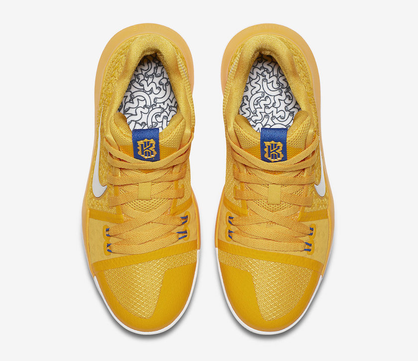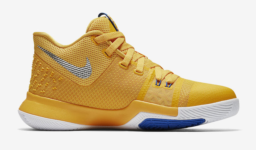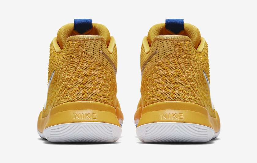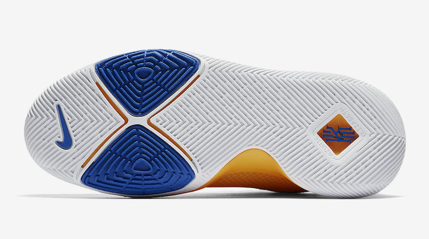 Nike Kyrie 3又将释出一款GS专享配色“Mac and Cheese”,橘黄的鞋面搭配银色swoosh,白色大底上点缀了蓝色图案。