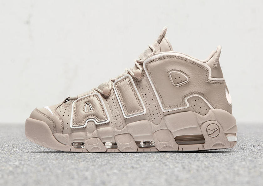 此款浅骨色/白色款Nike Air More Uptempo “Light Bone”即将登陆货架。在AIR字符周边及Nike Swoosh上点缀白色外,整体都覆盖了简约气质的浅骨色。