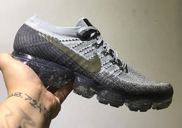 目前为止我们已经看过很多Nike Vapormax的新配色和新设计了,不过几乎都是在鞋面配色上做文章,很少有几款是为气垫大底增添不一样的创意元素。此番网路上曝光一款全新Nike Vapormax配色的谍照。以一深一浅双色调的灰色包裹Flyknit针织鞋面,Swoosh LOGO也是采用了比较质感的涂层设计。不过最抢眼的还数灰色的Vapormax气垫大底,加入星星点点的点缀让整个鞋底看起来独具特色。目前暂无发售信息,对这款“星光闪耀”Vapormax期待吗?