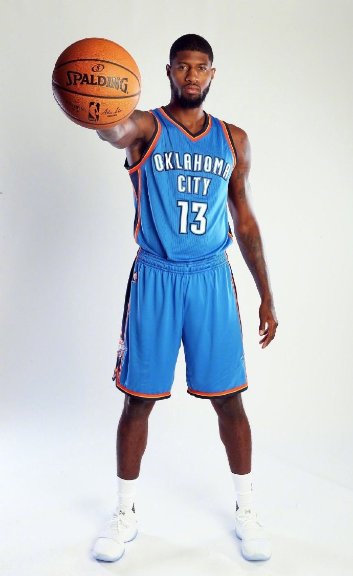 保罗-乔治今日身着雷霆主客场队服拍摄了一组定妆照,球衣号码选择的依旧是13号。