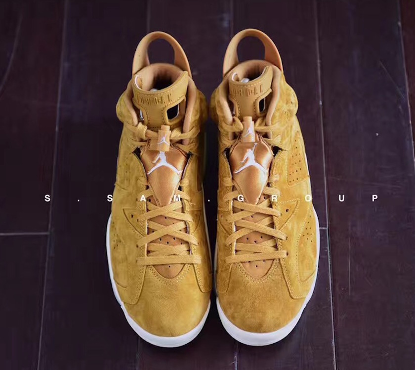 今年下半年Jordan Brand将要带来多款麂皮鞋面Air Jordan 6,此款Jordan 6 “Wheat”就是其中一款。通体覆盖了小麦色,并在中底,鞋舌,鞋提及内衬上点缀棕色,白色的中底和透明水晶底共同组成了鞋款的下半部分。