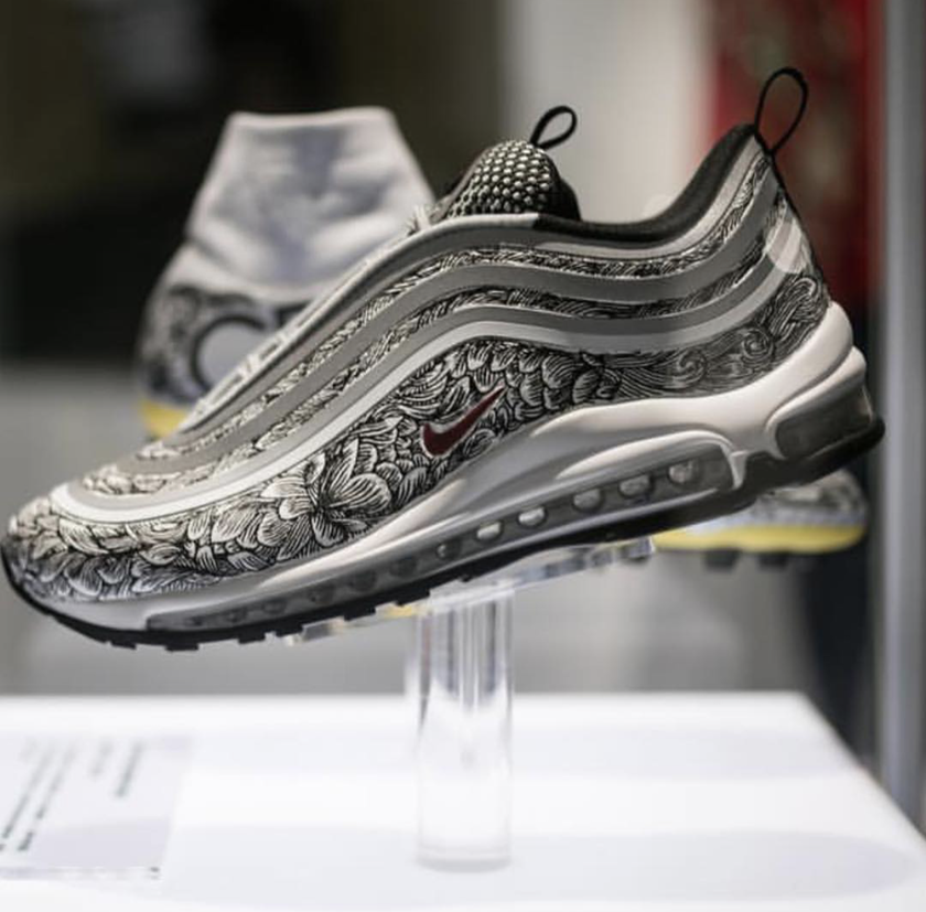 今日爆料账户Pinoe77晒出了一双从未见过的Nike air max 97,经典的流线型鞋身布满精致的手绘花朵图案,虽然以黑、灰、白三色呈现,但鞋侧的红色Swoosh LOGO被包裹与层层“花瓣”之中,雅致中带点惊艳的感觉。不过Pinoe77并没有指明这双鞋是定制作品还是官方之后会出品的,要真是发售了,会是你必买的Nike air max 97吗?