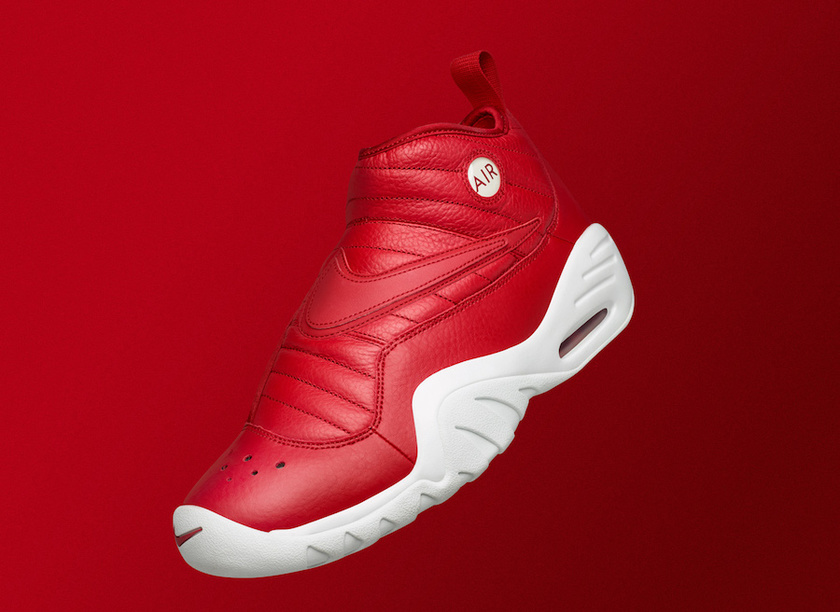 眼前这款Nike Air Shake NDestrukt “Gym Red”,曾经内线悍将丹尼斯-罗德曼的御用战靴,因其标志性的鞋面大Swoosh被爱好者们称为“歪钩”。此番Nike将公牛红配色赋予这款经典战靴,除全红的鞋面外,辅以白色中底和大底搭配,鞋头Swoosh和后掌开窗Air Max气垫都用了红色点缀。