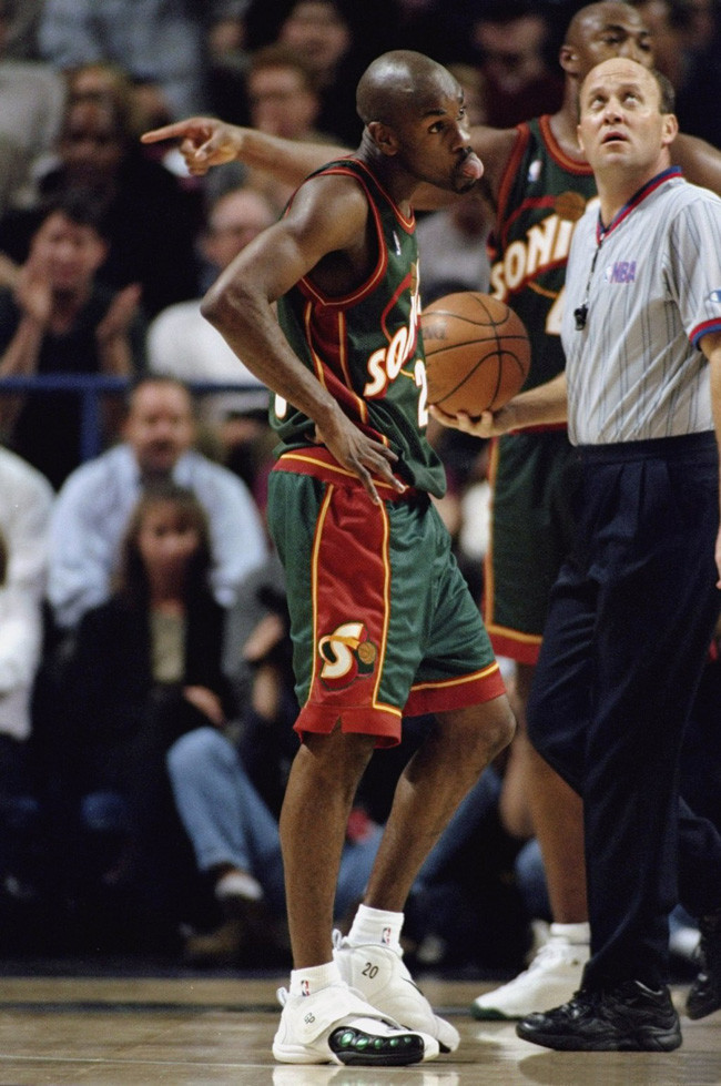 1998年,Nike为加内特推出了其第一双签名鞋。只是以签名鞋的标准来说,仅仅带有一个21号字样的Air Garnett更像一双iD鞋款,它在设计与科技上并没有展现出加奈特华丽的球风与品味。鞋面采用大面积皮革,配以车线勾勒出与中底相呼应的水纹图案。在其简单俐落的外型下,中底处选择了略带金属感的色泽呈现其设计感,并搭载后掌开窗式Max气垫搭配全掌Phylon,后掌开窗气垫的上方设计了类似于AJ13豹眼的装饰。