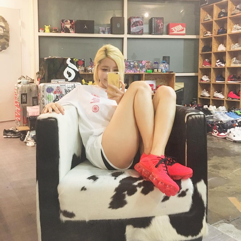 近期发售的CLOT X Vapormax,虽然发售过程一波三折,但人气依旧不低。由冠希代言,这双骚红色的CLOT X Vapormax带来强烈的视觉冲击,此番 DJ SODA 也忍不住上脚啦,长腿配大红色的Vapormax,好看咩?