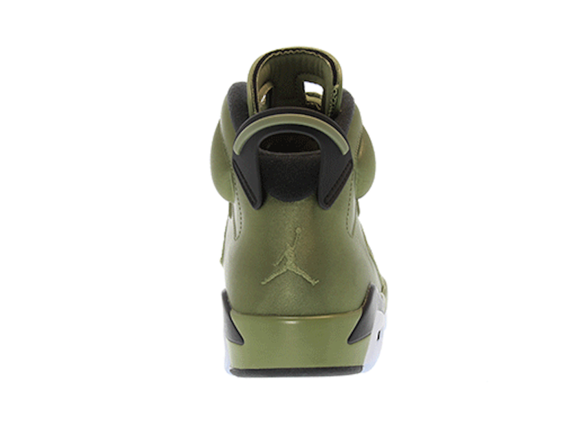 灵感来源于MJ在1991年在SNL电视节目中穿着的飞行员夹克,Jordan Brand打造了此款Jordan 6“Promo Jacket”。该鞋款的最大特色便是鞋面材质由绿色麂皮和尼龙拼接而成,搭配黑色元素和水晶底加持,鞋款营造出一股股浓浓的复古硬汉风。