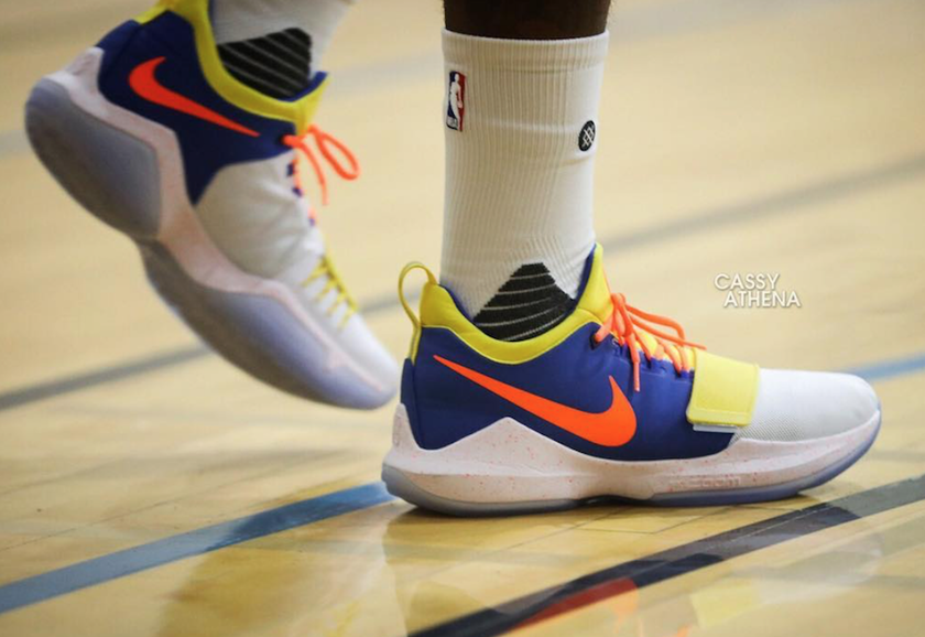自从Paul George将天赋带到俄克拉荷马后,这是Nike PG1 OKC官方配色的首都亮相。鞋款以新赛季雷霆队队服配色为灵感,将白色、亮黄、橙色以及蓝色共同组合,辅以冰蓝色水晶大底,OKC主题呼之欲出。