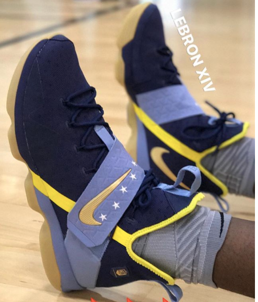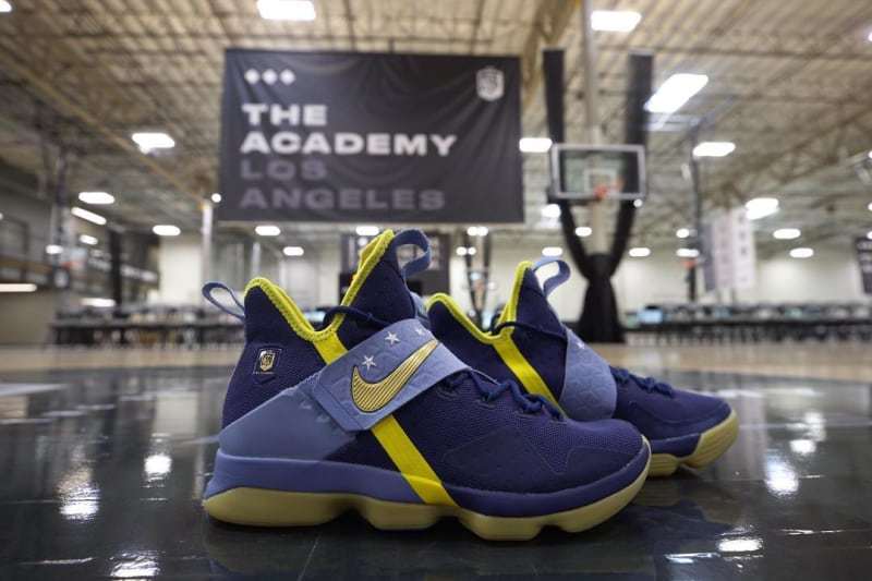 “Nike Basketball Academy”——耐克篮球学院配色此番降临Nike LeBron 14,深蓝色和浅蓝色的混合搭配,辅以明黄色和金色细节装饰,魔术贴伤的五颗星标志以及生胶大底的加持,都显露出此款球鞋的与众不同之处。