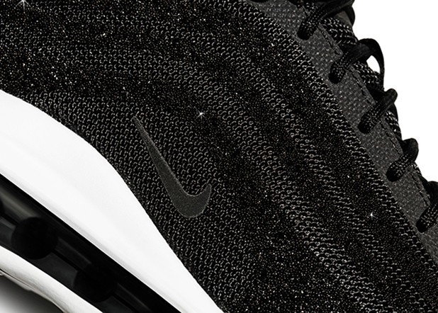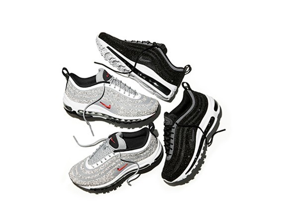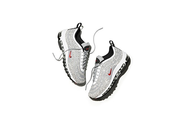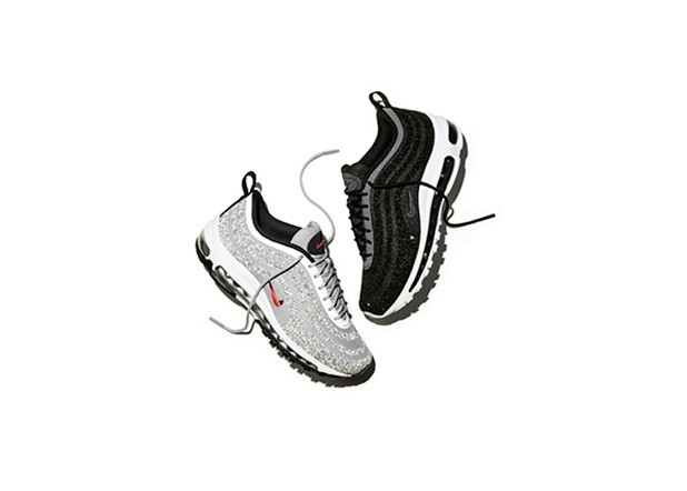 20年前,耐克推出一双以山地自行车的工业质感为灵感的银色运动鞋 – Air Max 97。它具有360度反光功能,在弱光环境或相机闪光灯的照射下极为耀眼。两年后,这款鞋推出金色配色,奠定了金属光泽在这款鞋设计历史上的核心地位。正值 Air Max 97 诞生 20 周年,Nike 为此别出心裁的将 Swarovski 施华洛世奇水晶的华丽气质赋予其中,带来两款 Nike Air Max 97 LX。