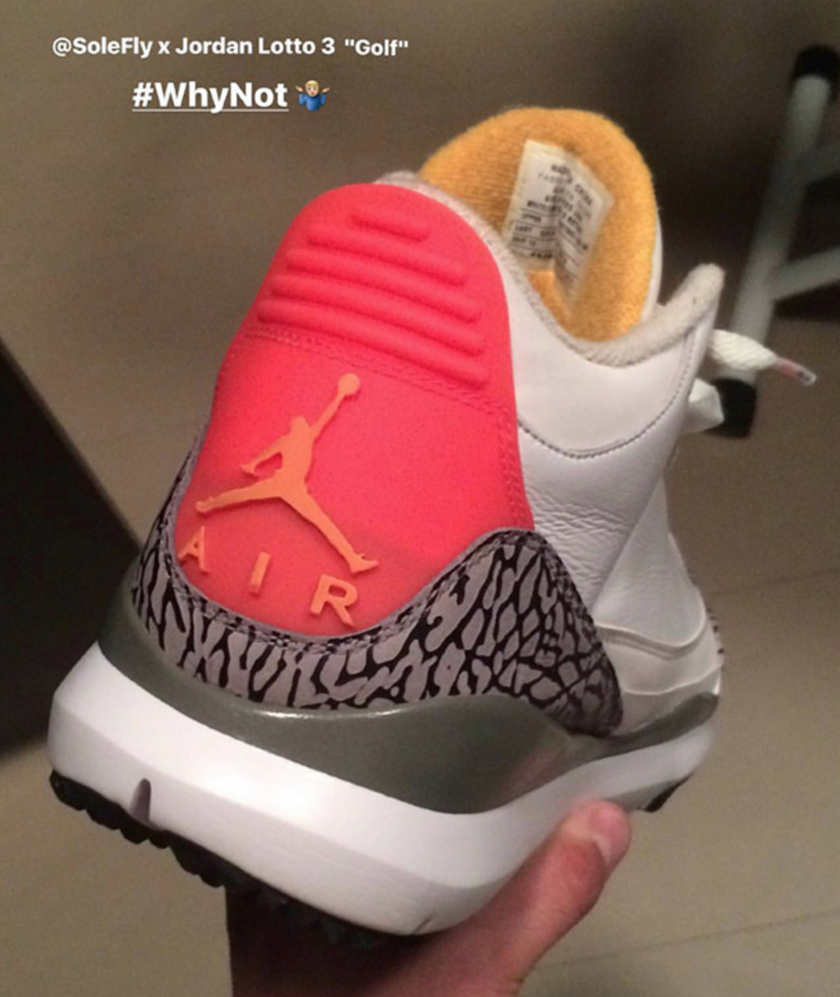 Miami著名球鞋店铺SoleFly最近在IG上展示了两双Air Jordan 3 “Lotto” Sample,其中一双为高尔夫球鞋。