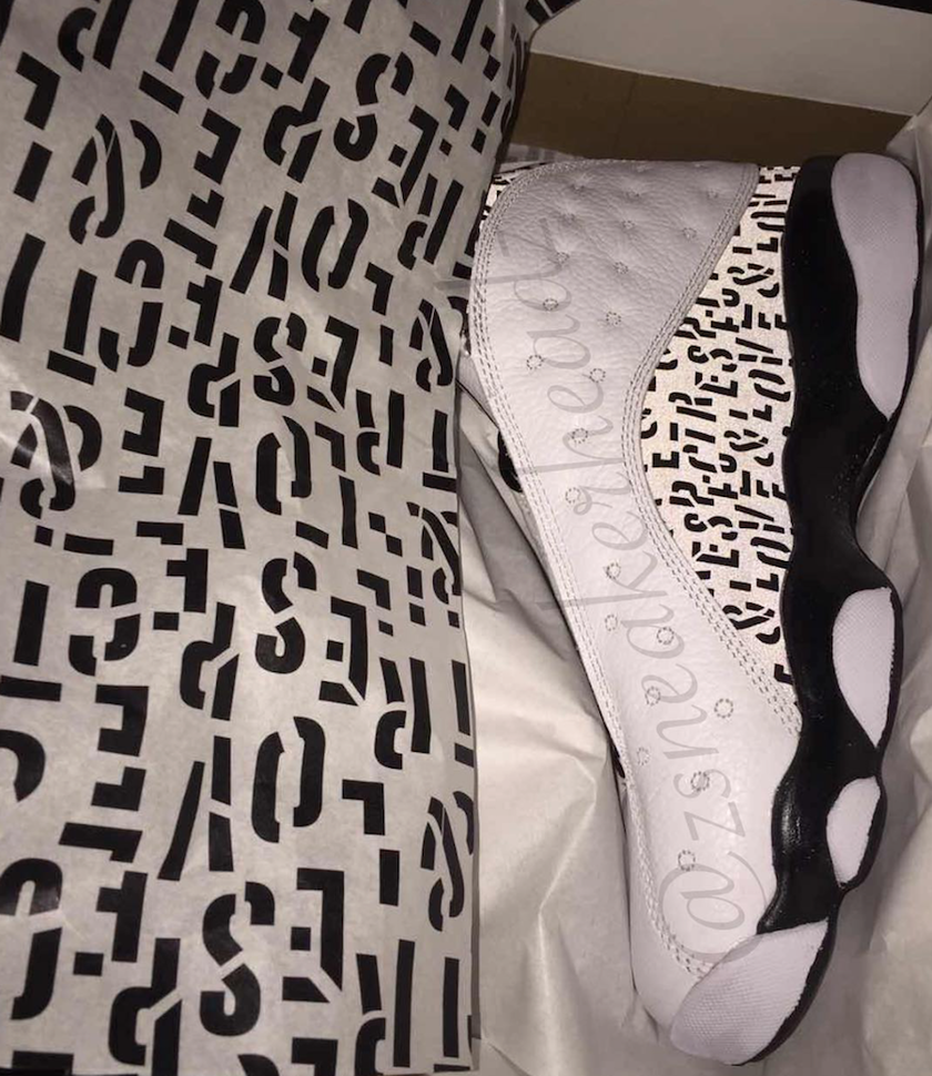 此款Air Jordan 13 “Love & Respect”设计初衷在于Micheal Jordan对篮球的爱和敬意,鞋身采用经典的黑、白二色拼接,同时辅以 3M 反光物料装饰细节,并印制着 Love 以及 Respect 字样呼应主题。