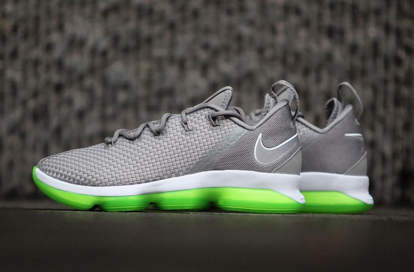 Nike 为 LeBron 14 Low 打造的全新配色再度遭遇提前曝光,而此款便是 LeBron 系列球鞋中最具代表性的 Dunkman 版本。从 LeBron 2 开始,詹姆斯的每一代球鞋都会推出这个配色,而这双 LeBron 14 亦是如此。此款编织的鞋身由深灰色包裹,同时搭载白色的中底以及荧光色的外底呈现,最后将标志性的 Dunkman 印制于鞋垫之上。