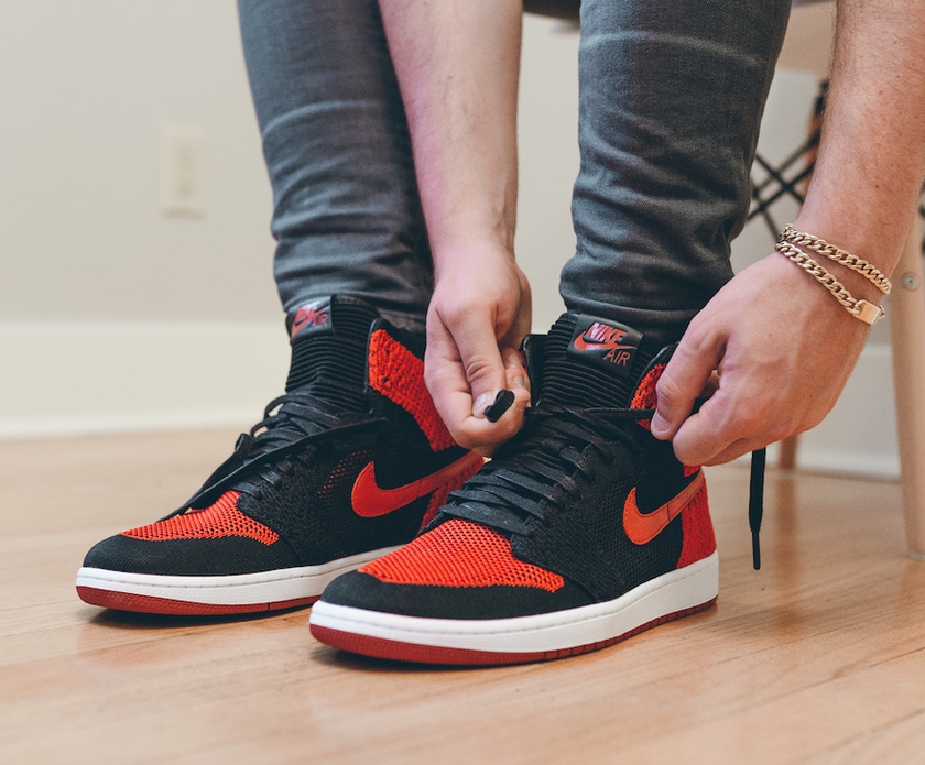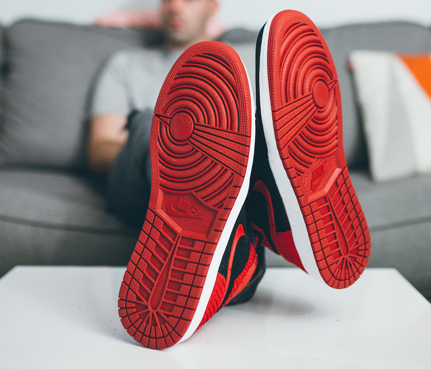 此款 Air Jordan I 依照现代标准重新设计,采用了完整 Nike Flyknit 结构和经典 Nike Air 缓震系统。为向 Air Jordan I 传统致敬,新外观设计还加入优质皮革打造的 Swoosh 标志和鞋舌,并在鞋舌和鞋垫部位融入 Nike Air 品牌标志。