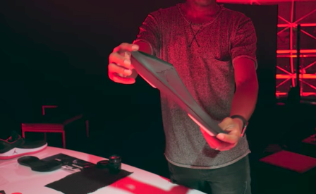 除此之外,他还向我们展示了 Air Jordan 32 的中底配置,前后分离的大面积 Zoom Air 气垫镶嵌在了 Phylon 中底上,中部的镂空则是 Flight Plate 的预留位。
