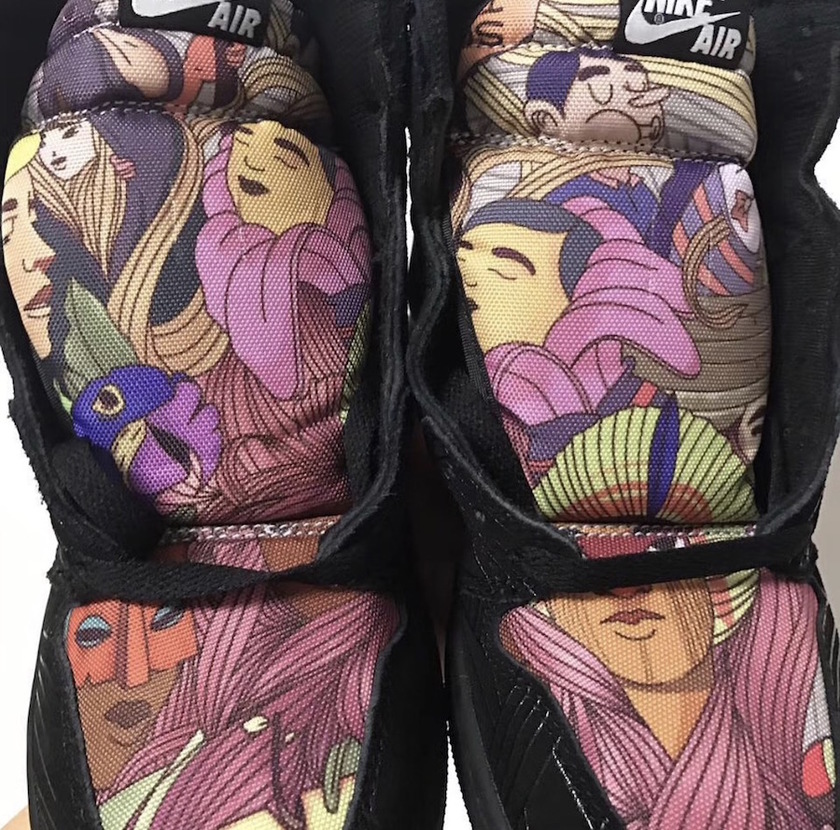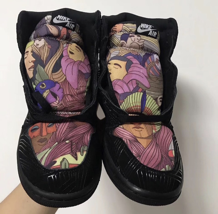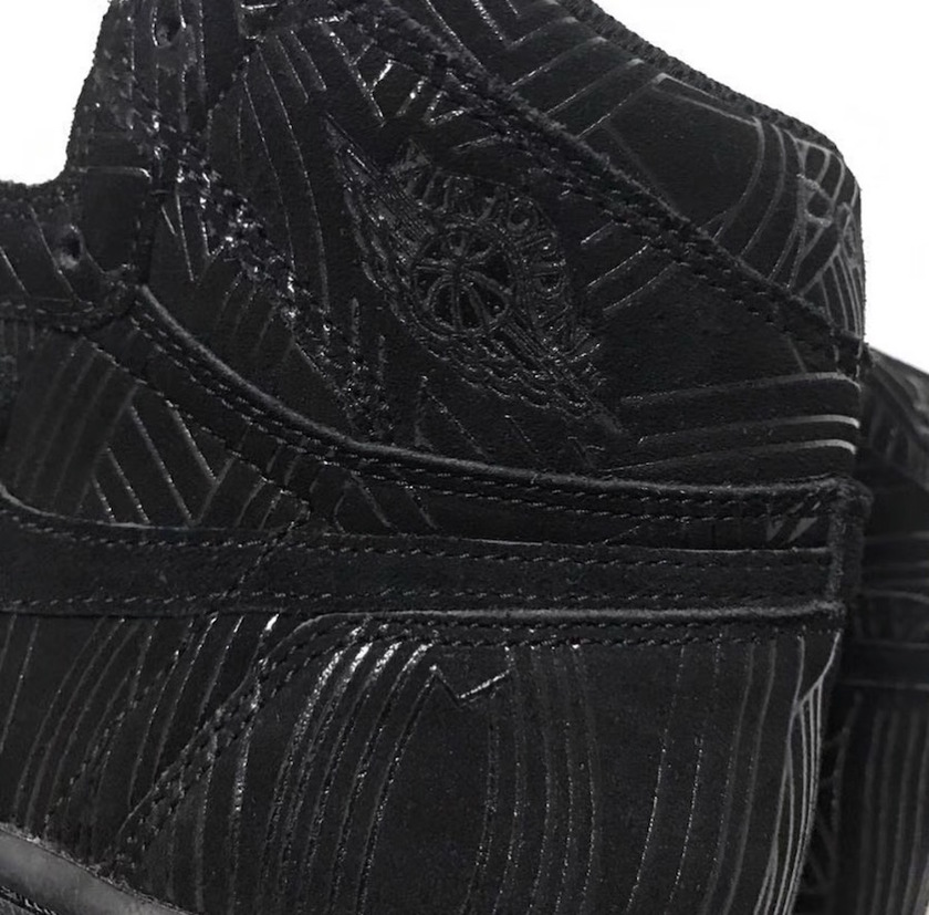 Air Jordan 1 “Los Primeros”今日曝出更多实物图片。西班牙语“Los Primeros”意味“第一”。全黑的暗纹鞋面点缀插画风格的涂鸦,同时鞋垫上也出现了两幅风格一致的涂鸦点缀,另外后跟部分“POMB”字样用了刺绣方式表现。