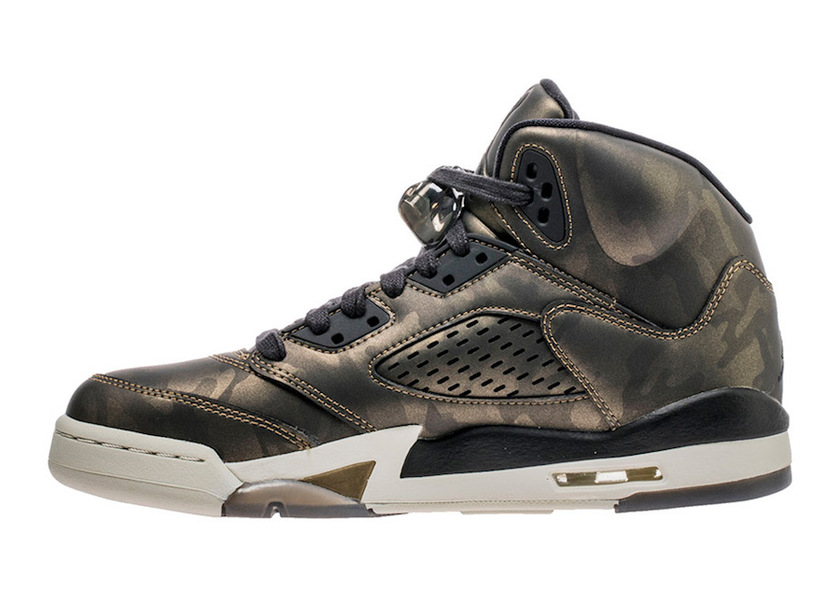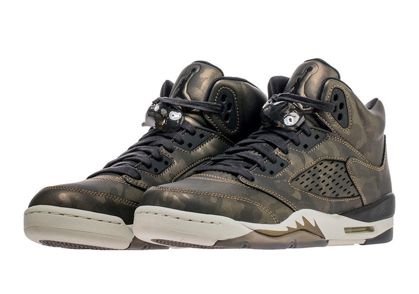 Jordan Brand日前为追求奢华品质的鞋迷们再度释出一款全新的 Air Jordan 5 Premium Heiress,此款以暗金色为鞋身主色调,同时辅以黄色的车线勾勒其经典的线条,并以迷彩纹理装饰其间,而细节则运用 3M 涂料加以点缀,白色的中底和灰色外底同时呈现。据悉鞋款为GS专享,目前未有成人码的发售信息。
