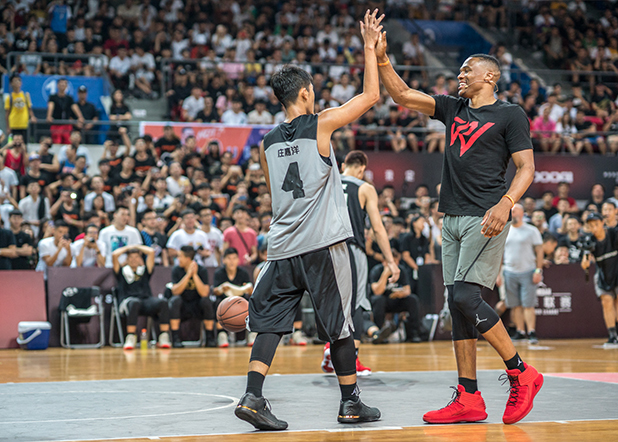 在过去的三天里,威斯布鲁克“飞翔之旅”,先后到访广州、上海两地。赛场上,威斯布鲁克以"Why Not?"态度教导年轻球员不断进步、挑战自我;赛场外,威斯布鲁克将"Why Not?"态度与时尚设计相结合,激励年轻一代保持自信,勇敢做自己。