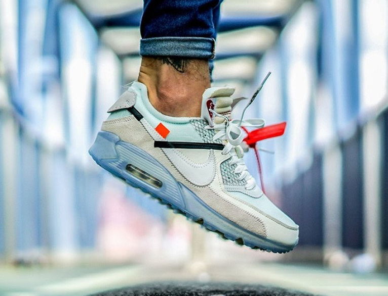 OFF-WHITE 与 NIKE的联名一直是最近大家关注的焦点,眼下这双OFF-WHITE x Nike Air Max 90虽然在10款联名中不是人气最旺的一款,但它的设计、上脚效果绝对是数一数二的。白色、灰色拼接鞋面搭配冰蓝色大底,再加入一些OFFWHITE设计元素的点缀,带来复古与时尚,经典与摩登的双重视觉体验。下面带来一组全新的上脚图,考虑一下要不要入手吧!