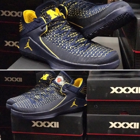 University of Michigan 篮球队近日收到了来自 Jordan Brand 的礼物——Air Jordan XXXII Low “Michigan” PE。鞋款采用球队经典配色海军蓝/校园黄打造,鞋舌处的“M” Logo 煞是显眼,左脚的 Wings Logo 也采用了与市售版不同的设计。