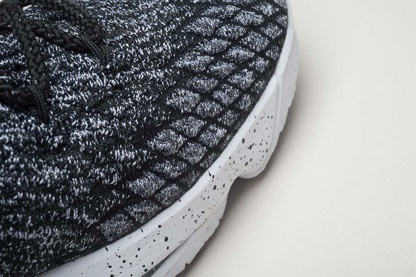 这款篮球鞋的科技亮点之一在于采用了新一代的Flyknit结构,这种结构具有定向伸展、贴合锁定和持久耐穿的特点。鞋底采用完全分区的缓震系统,结合Max Air气垫和Zoom Air气垫单元,与此同时,完整的内靴结构提供了舒适和贴合的穿着体验。