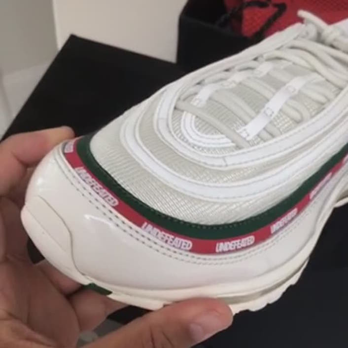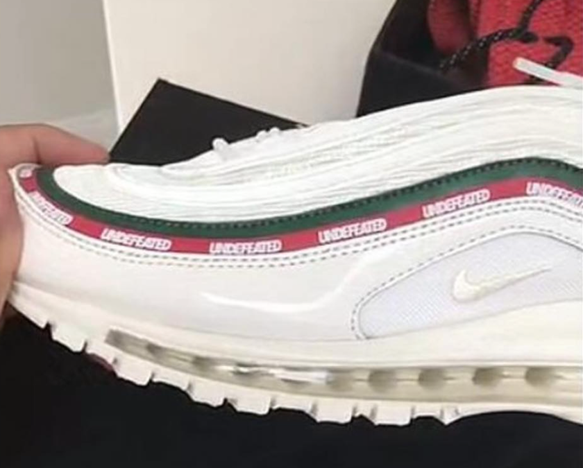 UNDEFEATED 与 Nike联名打造的另一双 Air Max 97 全白配色,在DJ Khaled、陈冠希曝光谍照之后,此番再次迎来更多实物谍照。白色版本采用与黑色版本一致的设计风格,鞋身由漆皮与网眼结合构成,鞋面中部同以带有 UNDEFEATED 字样绿、红波浪纹环绕,简约却尤为引人注目。据悉,这款 UNDEFEATED x Nike Air Max 97 白色版本也将会在9月发售,售价180美元,感兴趣的朋友不妨多多关注。白色设计让人惊喜,而且可以肯定的是,这次联名必是人气爆棚。