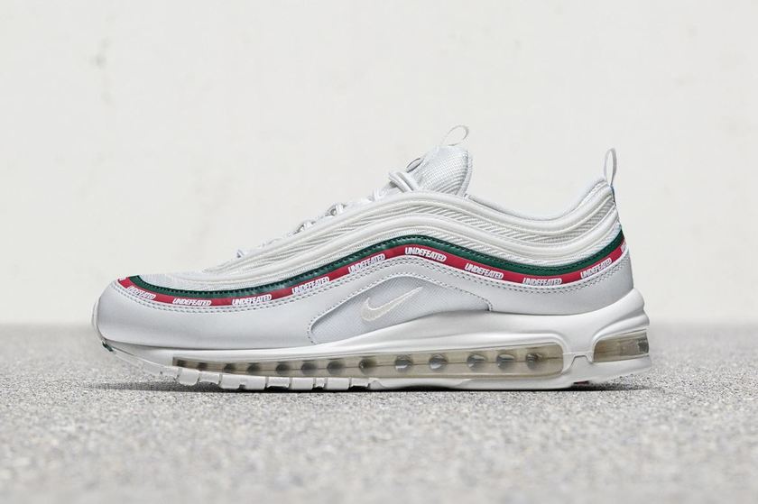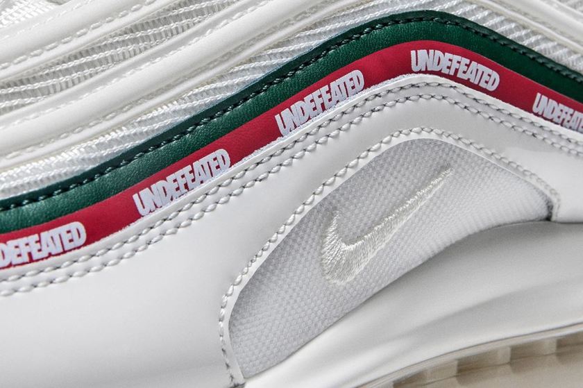 UNDEFEATED 与 Nike,今季再度携手推出全新 Air Max 97 联名设计,如今官方也正式公布了本次合作系列的发售信息。除了先前已曝光细节近赏的黑色版本外,令人向往的白色版本也将同步发售,两双鞋最大的特色便是将带有“UNDEFEATED”字样的红、绿线条环绕于鞋面之上,更以绿色 Swoosh 和“5 Strike”标志作点缀,最后搭载全掌 Air Max 可视大底单元呈现。