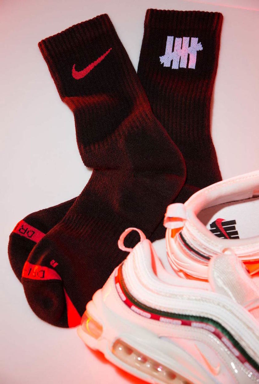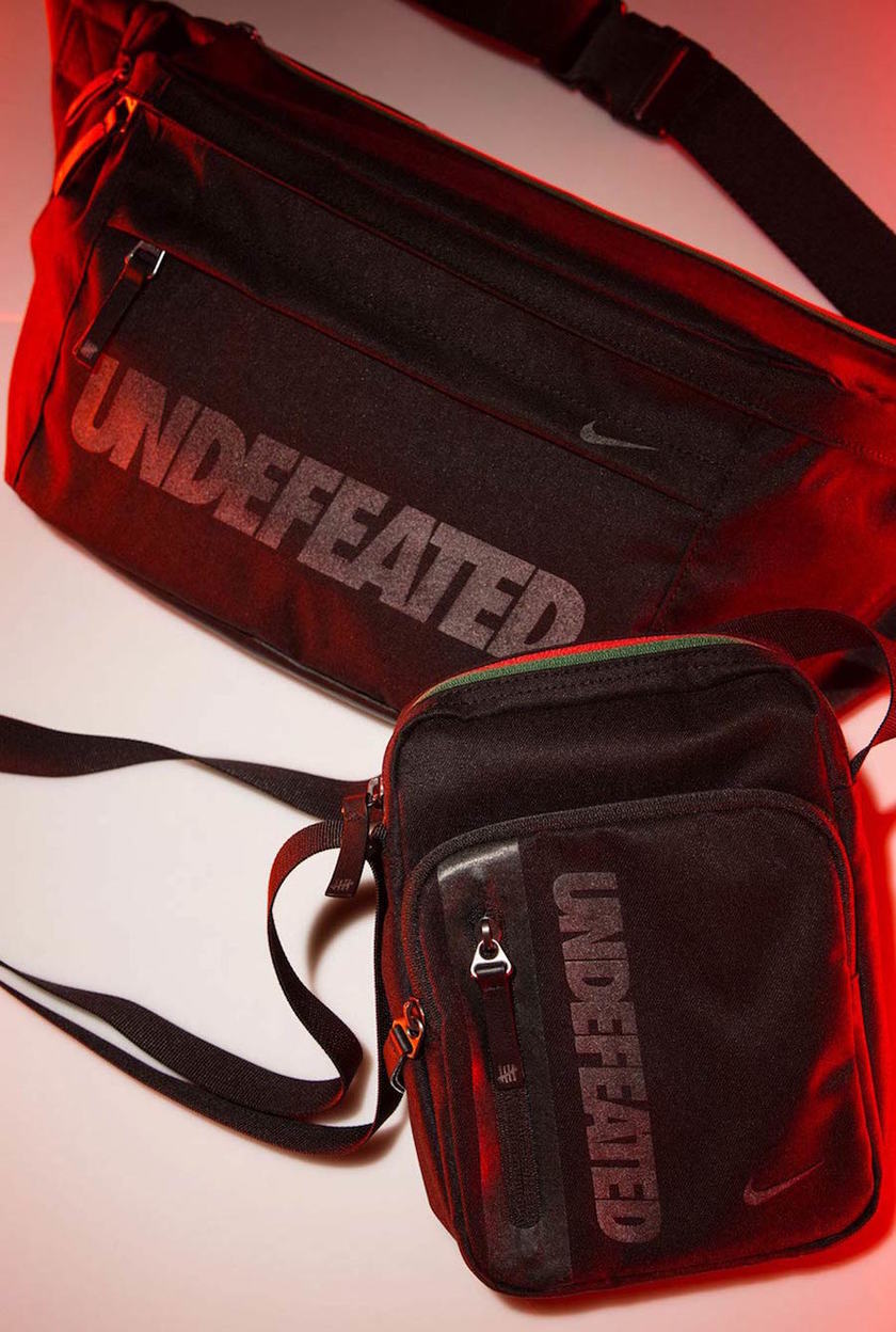 该系列联名服饰和配饰单品也终于完整揭晓。当中涵盖了时下最能代表街头特色的腰包和跨包、完美搭配 Air Max 97 的 Dri-Fit 运动机能袜,以及印有“Property of UNDEFEATED” 和 “WORLDWIDE” 等联名 Logo 的连帽衫与 T-Shirt,而设计上依然是以黑色、白色和绿色为主。