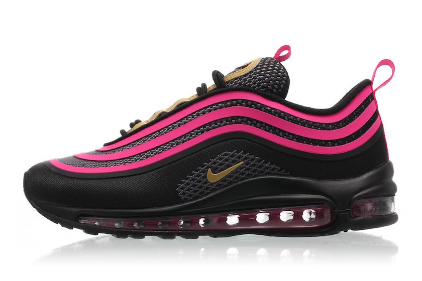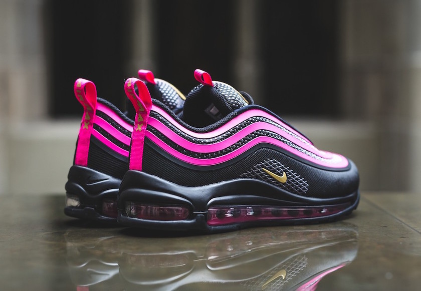 今年是 Air Max 97 诞生的 20 周年,在以 Silver Bullet 银子弹配色人气开场之后,多款全新的升级版本 Nike Air Max 97 Ultra 也即将悉数登台亮相!此番带来全新配色“Pink Prime”。鞋身整体采用黑色为主基调,采用全新网眼材质制作鞋面,标志性的鞋身线条则选用醒目的亮粉色呈现,辅以金色细节点缀,吸睛度指数很高!