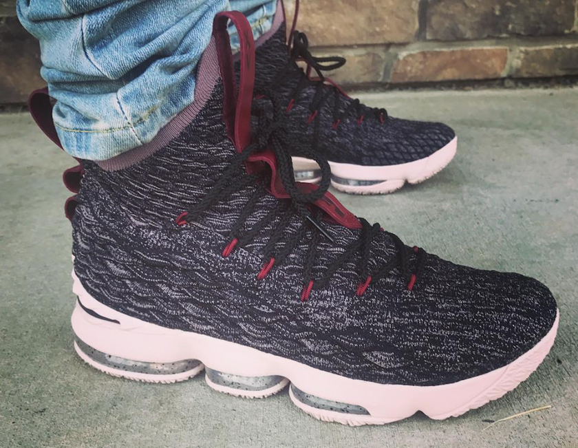 虽然 Nike 已经正式发布了万众瞩目的 LeBron 15,但官方似乎并不急于展示为此款推出全新的配色设计。日前勒布朗·詹姆斯的好友 Frankie Walker 分享了一款还未曝光的版本,此款以灰色和白色的织线包裹鞋身,而鞋舌、后跟以及内衬则由酒红色装饰,最后搭载全新的白色 Zoom+Max 缓震中底呈现。