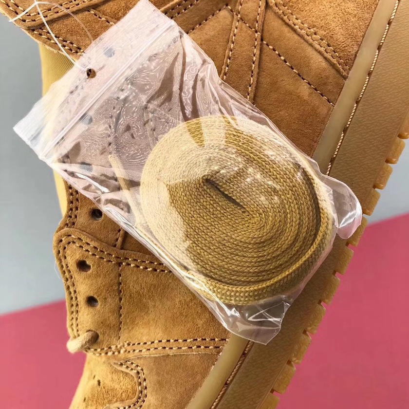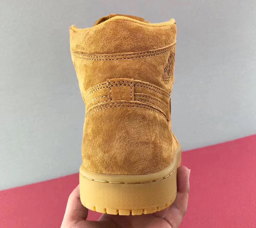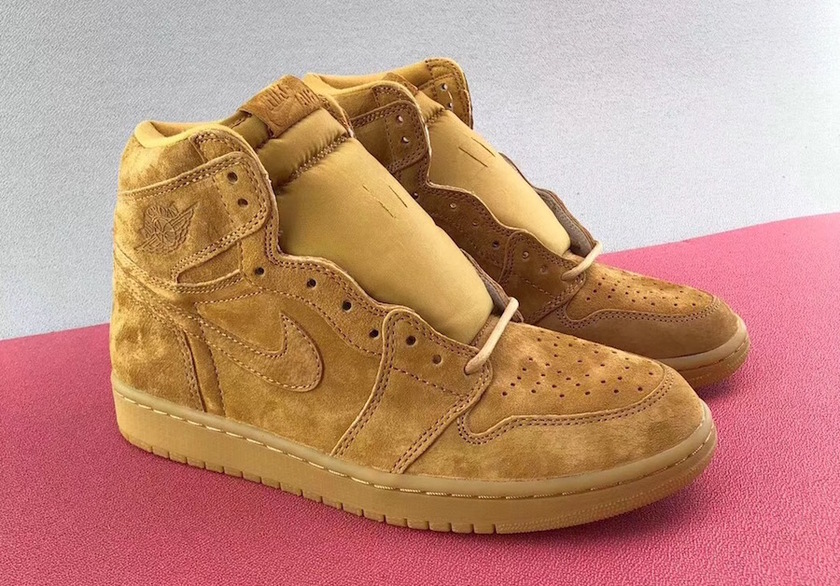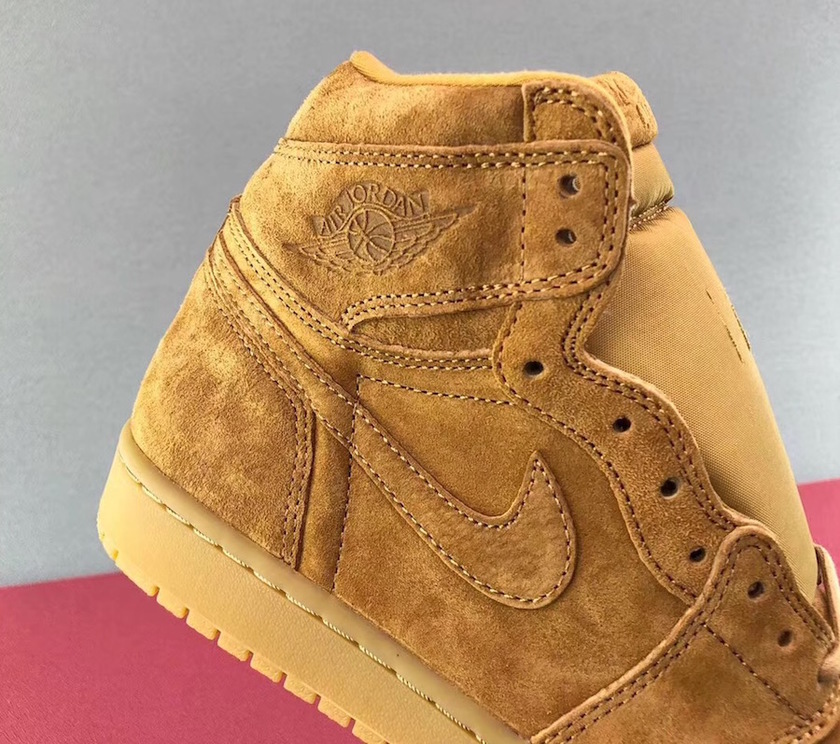Air Jordan 1 Retro High OG Wheat 今日又释出了实物示例,此款鞋身同样运用麂皮打造而成,同时辅以麦黄色贯穿整个鞋身,而脚踝则由白色的飞翼 LOGO 点缀,最后搭载白色的中底以及生胶外底呈现。