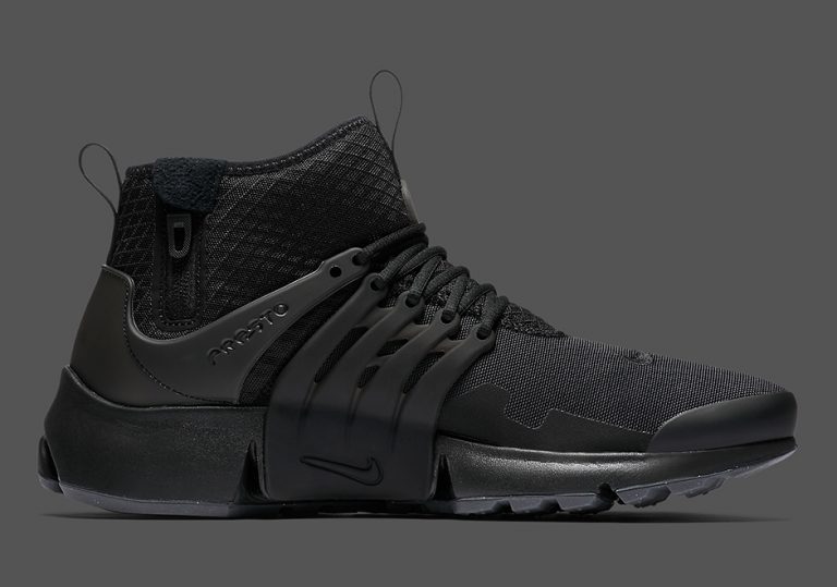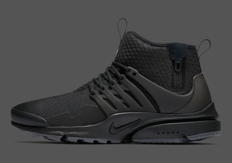 Nike Air Presto Utility Mid 有着类似ACRONYM x Nike air presto联名的影子,也常被称为其更高性价比的代替品。而作为机能风格产品最常见的纯黑配色此次也被搭载到了这双Nike Air Presto Utility Mid 鞋身之上,虽然为纯黑配色,但是通过不同质感材质的搭配组合完全带出了鞋子的“黑魂”气息。中筒鞋身机能感满载,据悉,此款配色即将登陆 NikeStore。