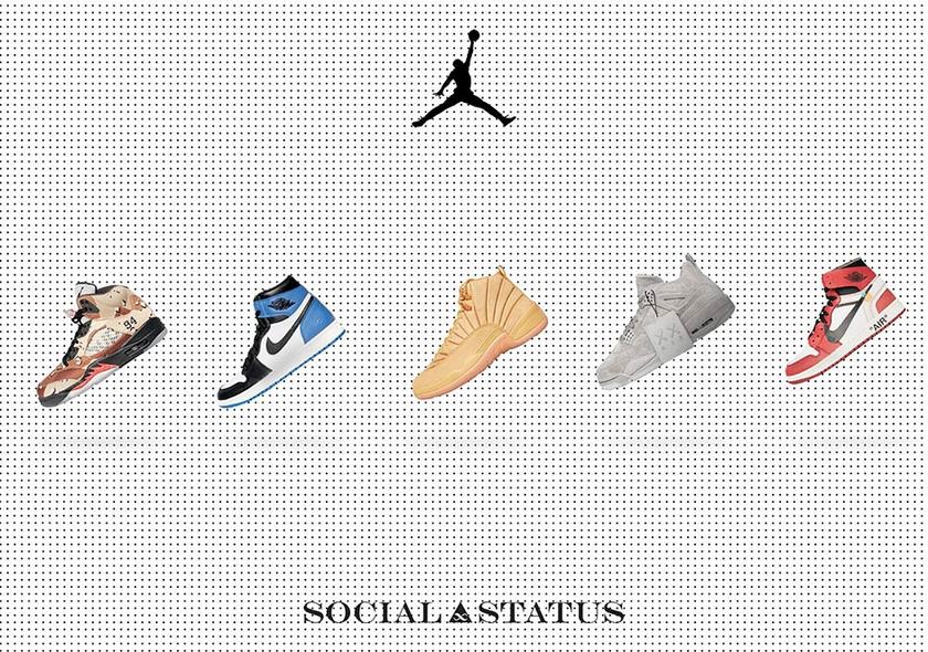 其中包括了Fragment x Air Jordan 1, KAWS x Air Jordan 4, OFF WHITE x Air Jordan 1, PSNY x Air Jordan 12 Wheat, 以及Supreme x Air Jordan 5。