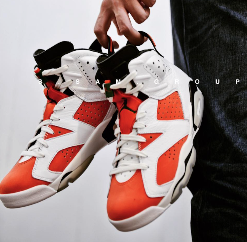 没有想到之前谣传将发售的Air Jordan 6 “Gatorade”如今确定会有两款配色发售。眼前这双便是非限量款的白/橙配色Air Jordan 6 “Gatorade”。和绿色麂皮款比起来,你会更喜欢哪一双呢?