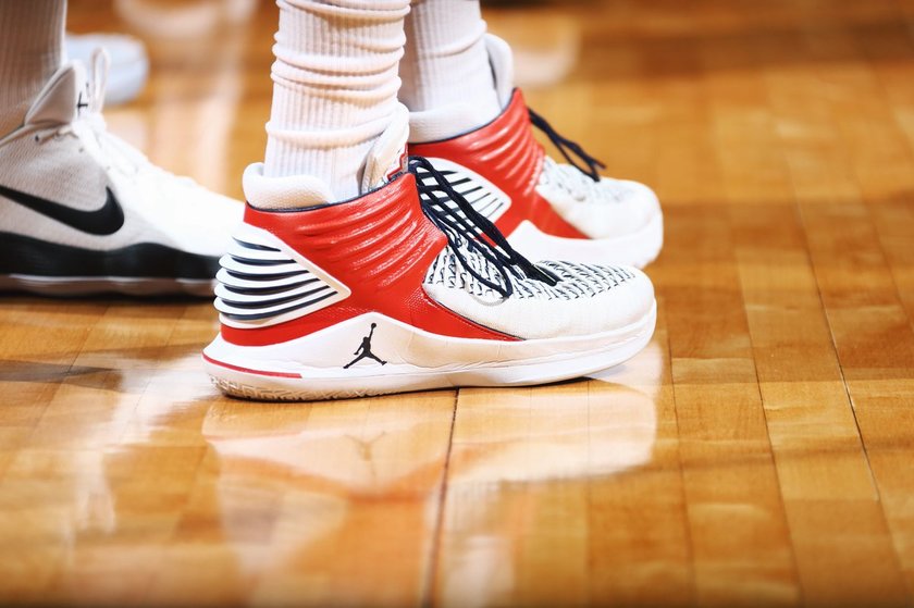 在今日NBA季前赛,奇才对阵尼克斯的比赛中,奇才队前锋奥托-波特上脚了一款颇为抢眼的Air Jordan 32。鞋款以白红色为基础色带哦,辅以黑色细节点缀,整体配色醒目具有动感。