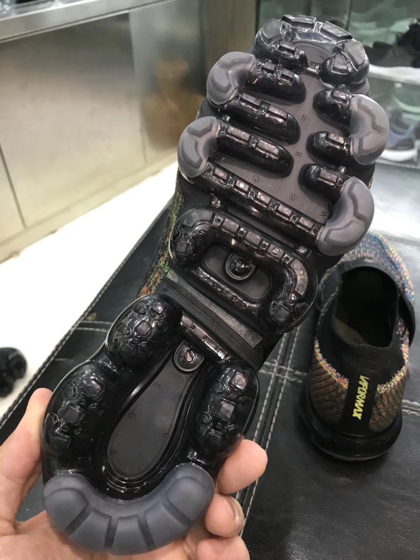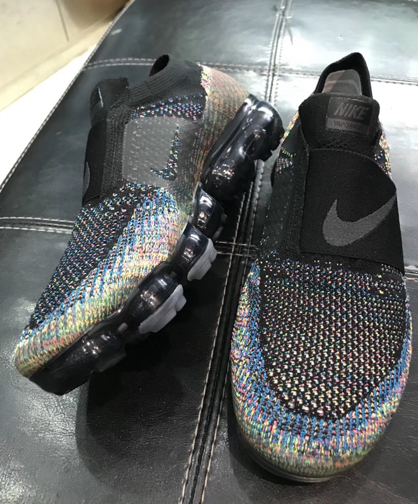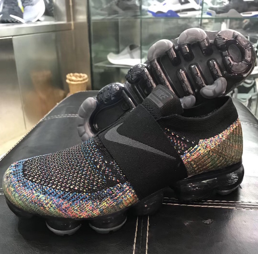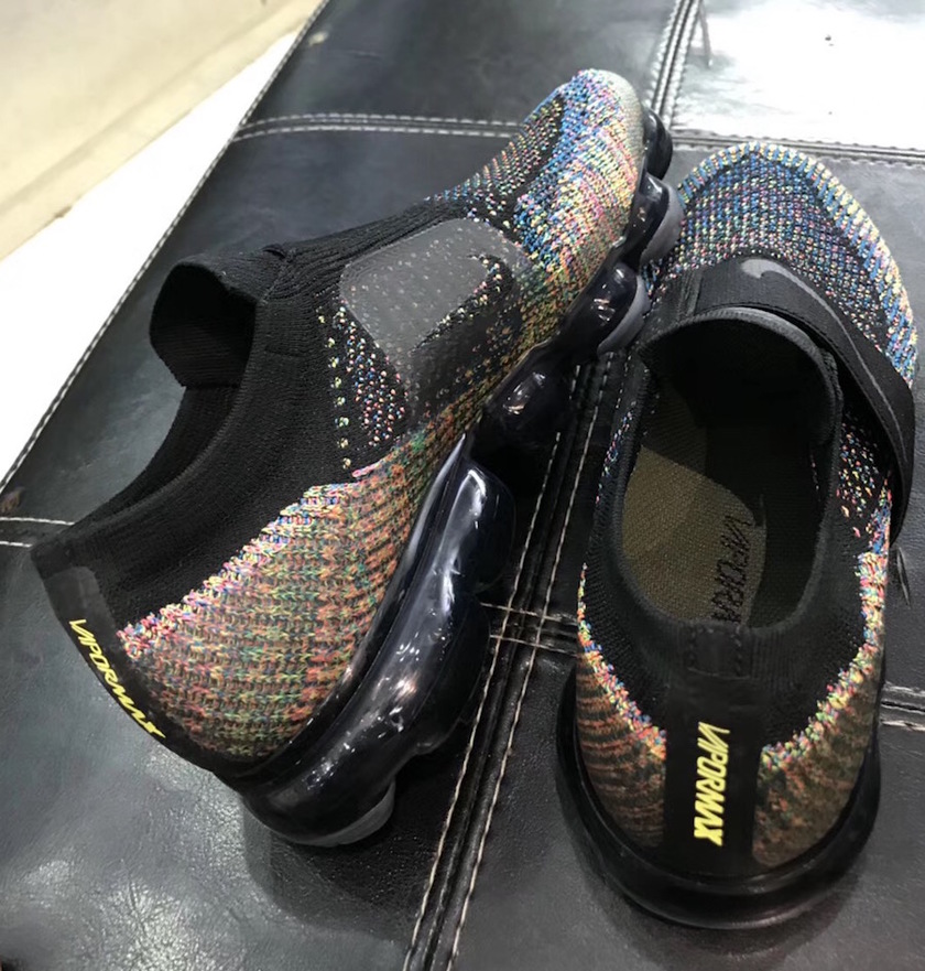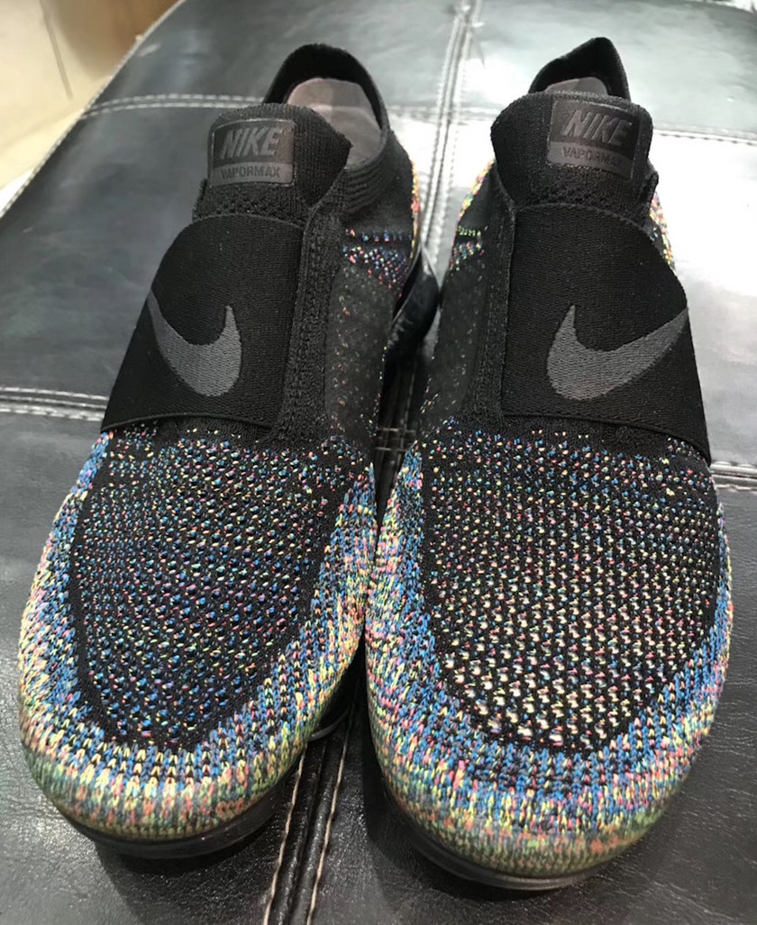 Nike VaporMax Laceless 全新无鞋带版本预计将在2018年发售,而此番带来极具人气的 “Multicolor” 配色实物图。从图可见,这双 Air VaporMax Laceless 以多彩纱线交织构成袜套式 Flyknit 鞋身,极具辨识度的中足绑带以及 VaporMax 鞋底则以纯黑覆盖作为对比。 一抹银灰色 Swoosh 点缀于绑带中央,与鞋舌 Logo 呼应代表品牌身份。据悉,该款配色同样将于明年登场,敬请期待。