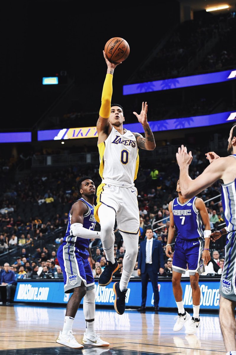 NBA季前赛火热进行中,在今日湖人对阵国王的比赛中,湖人队潜力新星Kyle Kuzma上脚了这款“Rise”配色的Nike Kobe A.D. 。本场比赛,Kuzma替补出场26分钟,看下15分8板3助攻,帮助球队75-69赢得胜利。