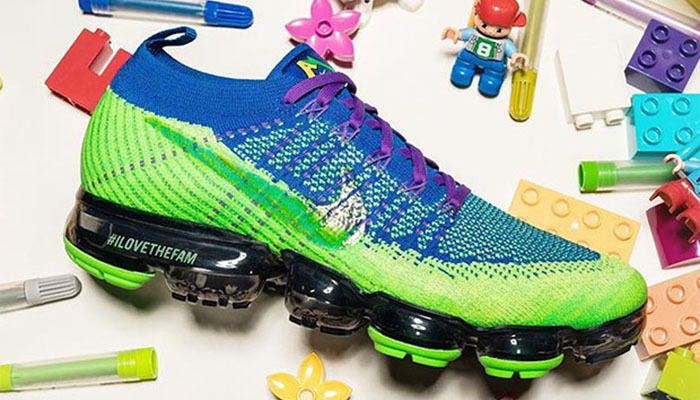 今年的首款 “Doernbecher Freestyle” 慈善医院系列产品日前现身网络,首款产品选择了今年的 Nike Air Max 家族全新成员 Air VaporMax。蓝绿色鞋身搭配紫色鞋带,黑色 VaporMax 气垫中底位置印有显眼的 #ILOVETHEFAM 字样,此外鞋舌处也有专属的 Logo 图案呈现。据悉 Nike 官方会在近期正式公布全新一季的 “Doernbecher Freestyle” 系列,敬请留意后续完整报道。