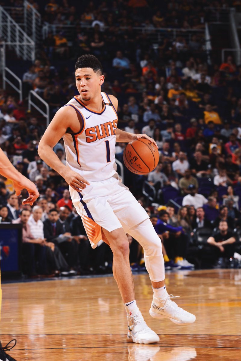 在今日太阳对阵湖人的比赛中,Devin Booker上脚了这款即将发售的OFFWHITE x Nike React Hyperdunk 2017 Flyknit。