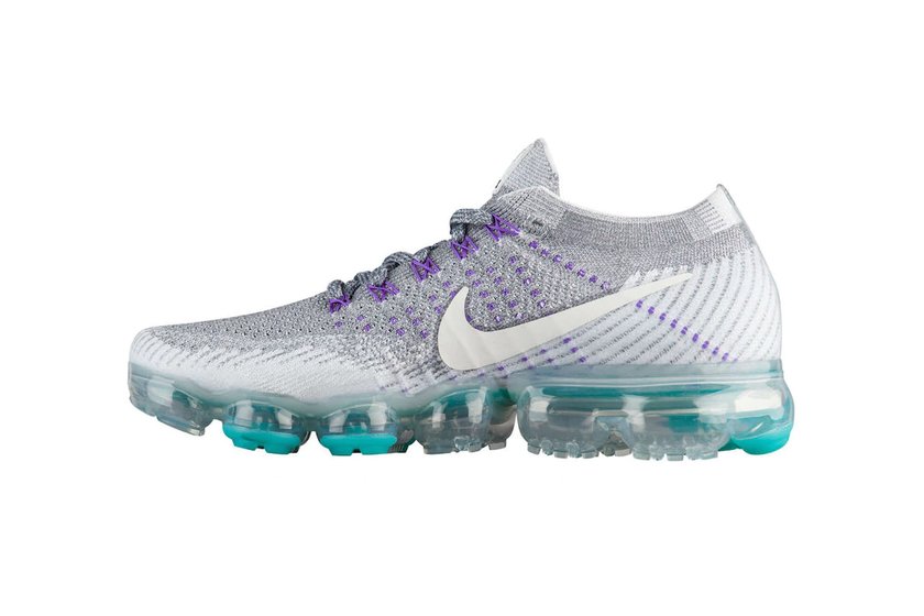 继 Laceless 无鞋带版本强势来袭并登录 NIKEiD 平台之后,Nike 超人气鞋款 Air VaporMax此番又公布了全新“Heritage Pack”的发售信息。顾名思义,该系列由男鞋和女鞋两个版本组成,而设计灵感分别来自于 Nike 经典配色“Grape”和“Neon”,其中前者为女鞋版本,并采用灰色 Flyknit 鞋面搭配紫色 Flywire 及湖绿色鞋底细节作点缀;