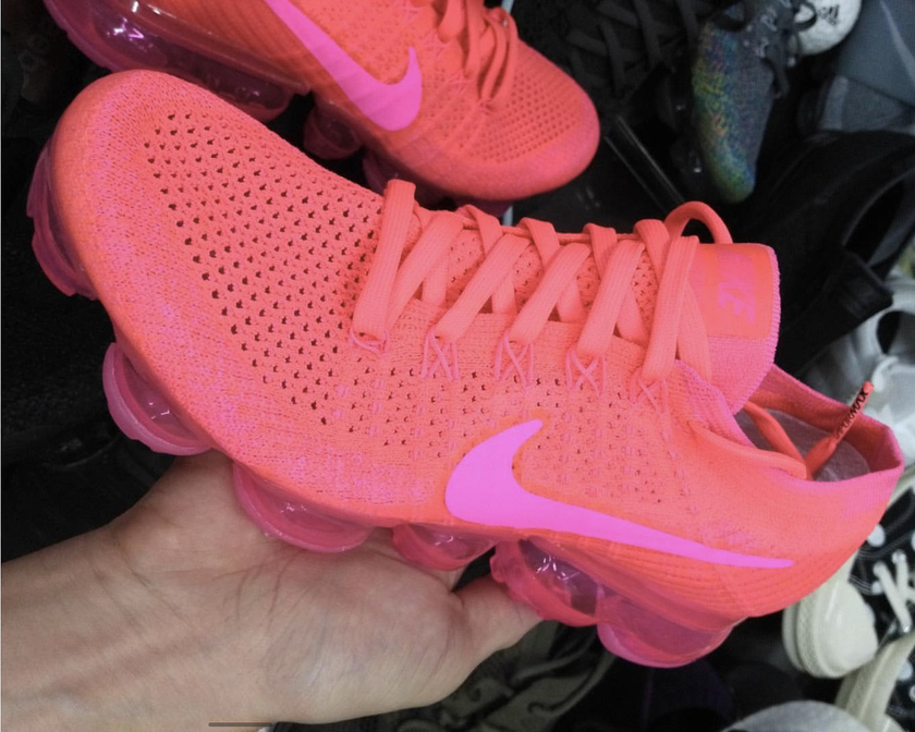 近日,爆料账户Pinoe77 展示了一双粉色的Nike air vapormax 实物谍照!可是说颜色是非常具有视觉冲击力了。整个粉色的Flyknit鞋面搭配更亮更粉的Swoosh LOGO,最后搭配同为粉色的Vapormax鞋底单元,就问你能不能驾驭!?