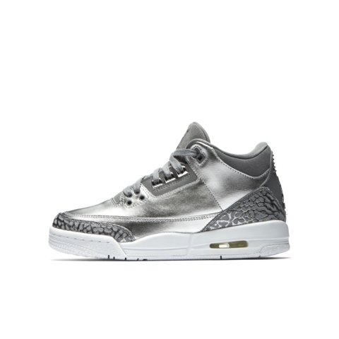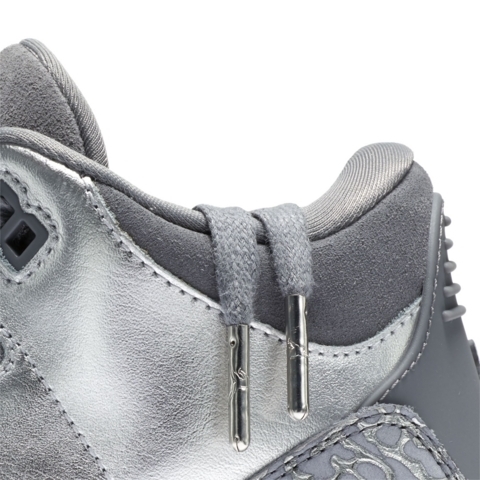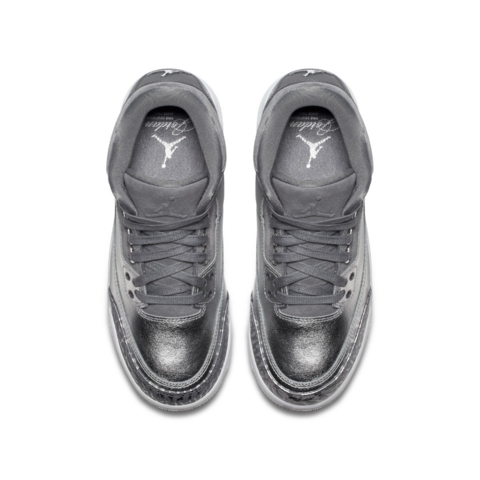 Jordan Brand将在今年的秋冬季Heiress女子系列鞋款中添加一款全新Jordan 3。今日该鞋款官网实物图释出,保留了Jordan 3经典爆裂纹之外,鞋款以大面积银色电镀革制鞋面加持,整体营造了未来感十足的氛围。