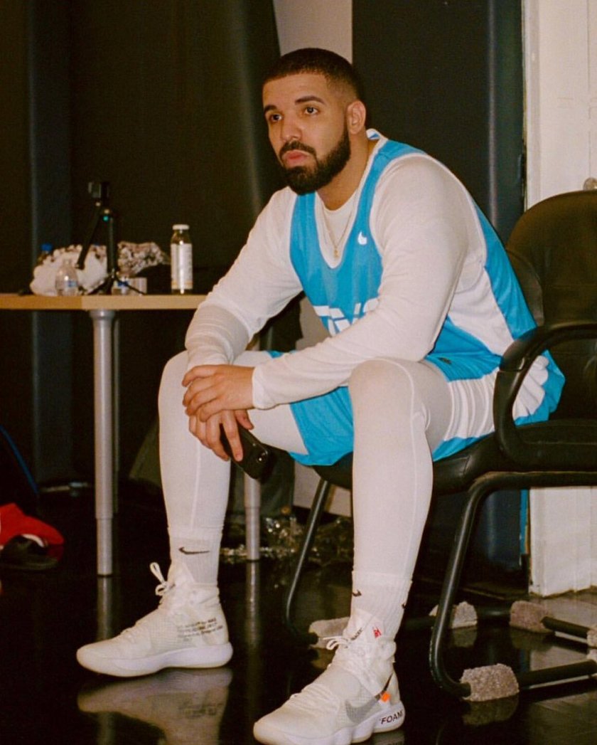 来自Drake在其IG上的最新PO图,可以看到他脚下的便是即将在11月发售的OFF-WHITE x Nike React Hyperdunk 2017 Flyknit。