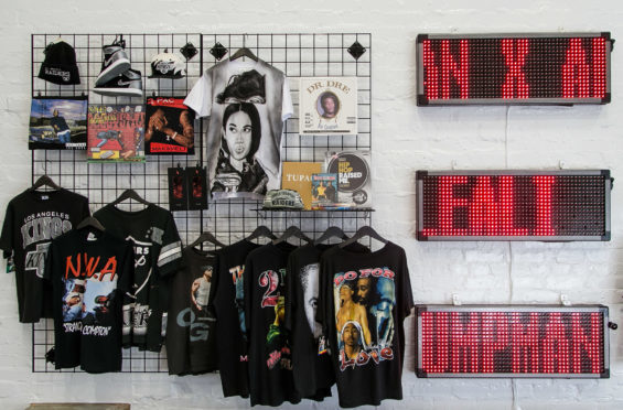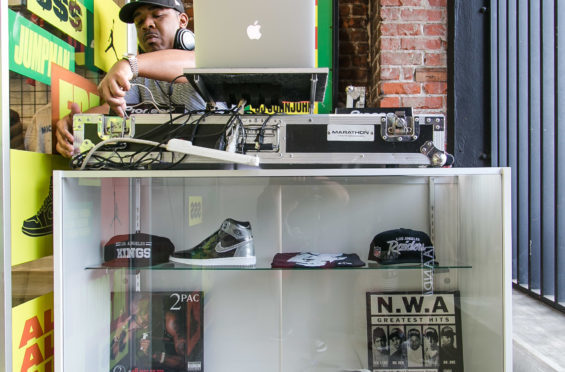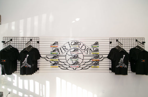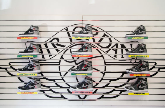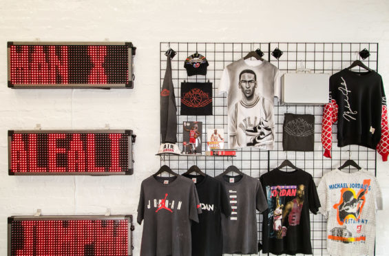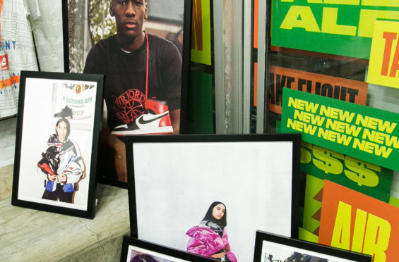 除了Aleali May x Air Jordan 1外,店铺内还充斥着Old School风格的Hip-hop T恤、多彩的广告招贴画,以及Michael Jordan、Alealia和她的家人的照片。