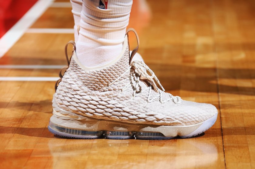 比赛中,LeBron 则换上了已经市售的LeBron 15 “Ghost”配色。