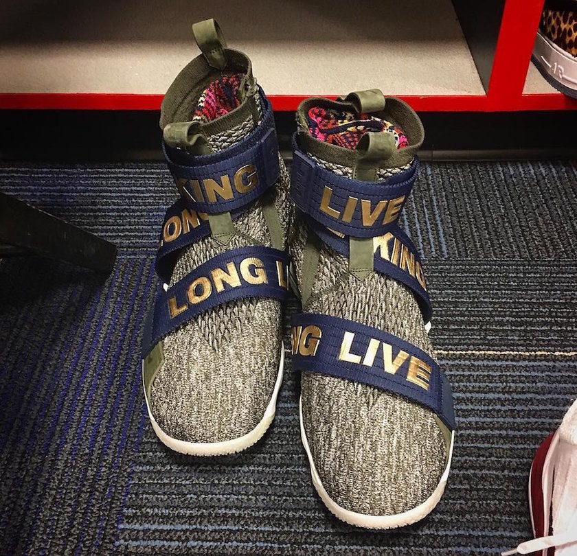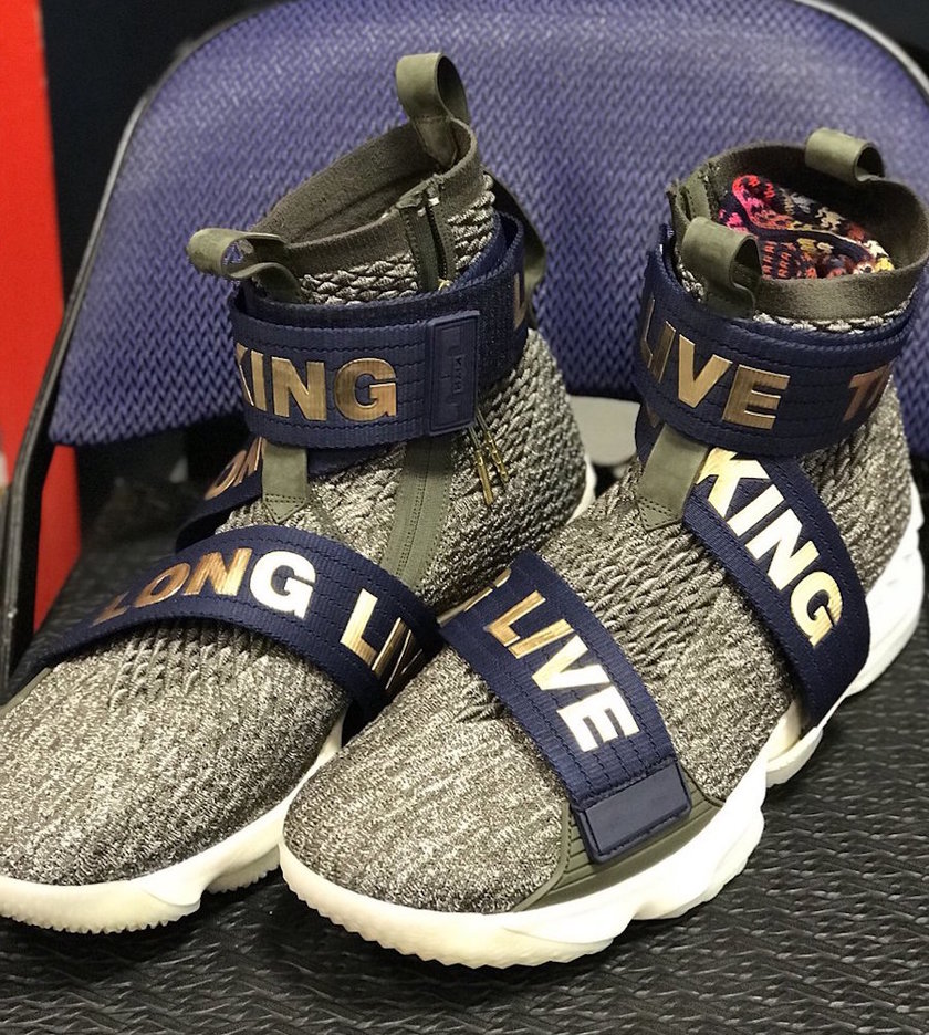 在今日对阵华盛顿奇才队的比赛前,LeBron James 上脚了一款特殊的Nike LeBron 15。该款绑带附带版本曾在KITH的秀场上露面,此番我们也看到了绑带上“Long Live The King”的字样。